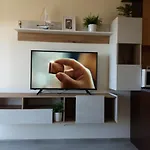 Die Unterkunft ist mit einem Sofa ausgestattet und verfügt über einen Flachbildfernseher mit Satellitenkanälen und ein Fernsehen mit mehreren Kanälen, ein Bügeleisen/Bügelbrett sowie Annehmlichkeiten wie eine Klimaanlage. Darüber hinaus bietet das Apartment eine Terrasse mit einem Swimmingpool und einer Küchenzeile für den vollen Komfort der Gäste. Es gibt 1 Bad, wo eine getrennte Toilette und eine Dusche zur Verfügung stehen. Darüber hinaus gibt es im Badezimmer Handtücher.